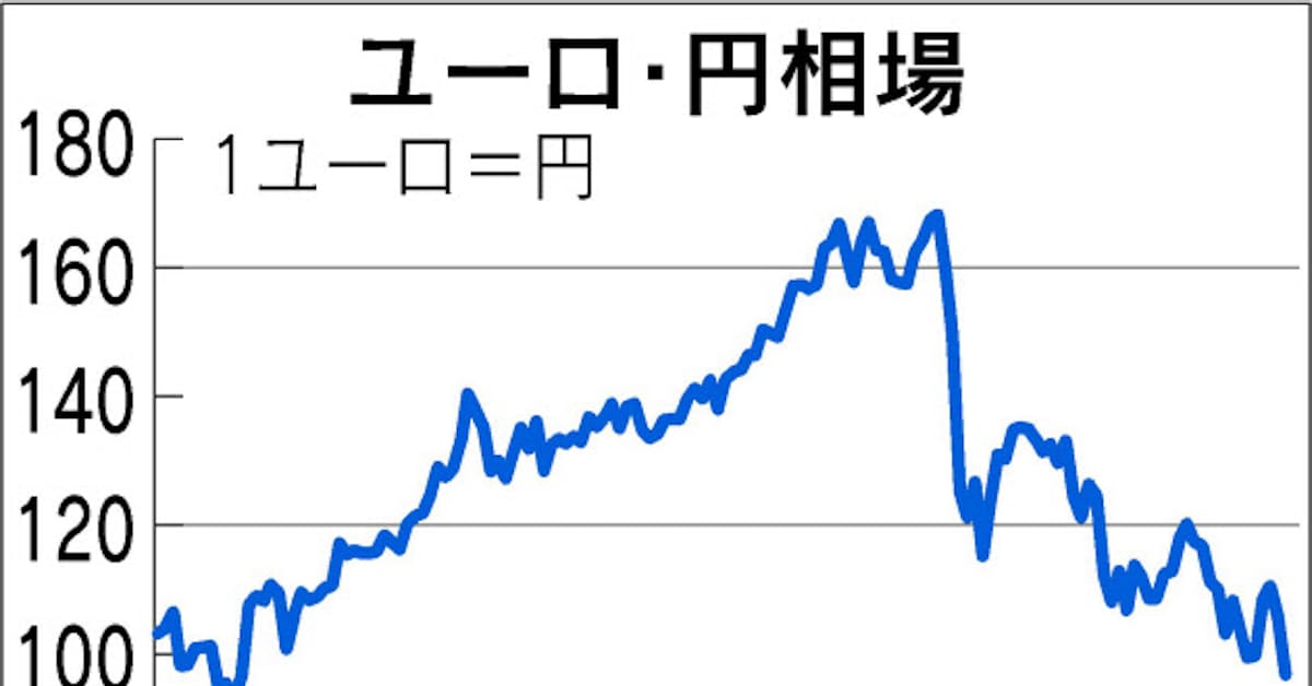ユーロ急落 一時11年半ぶり96円台 日本経済新聞
