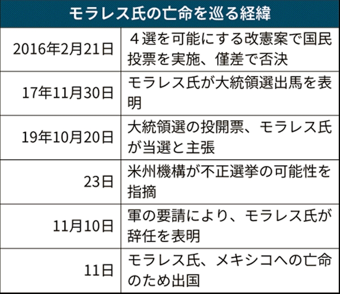 ボリビア大統領 メキシコ亡命へ 治安維持へ軍出動 日本経済新聞